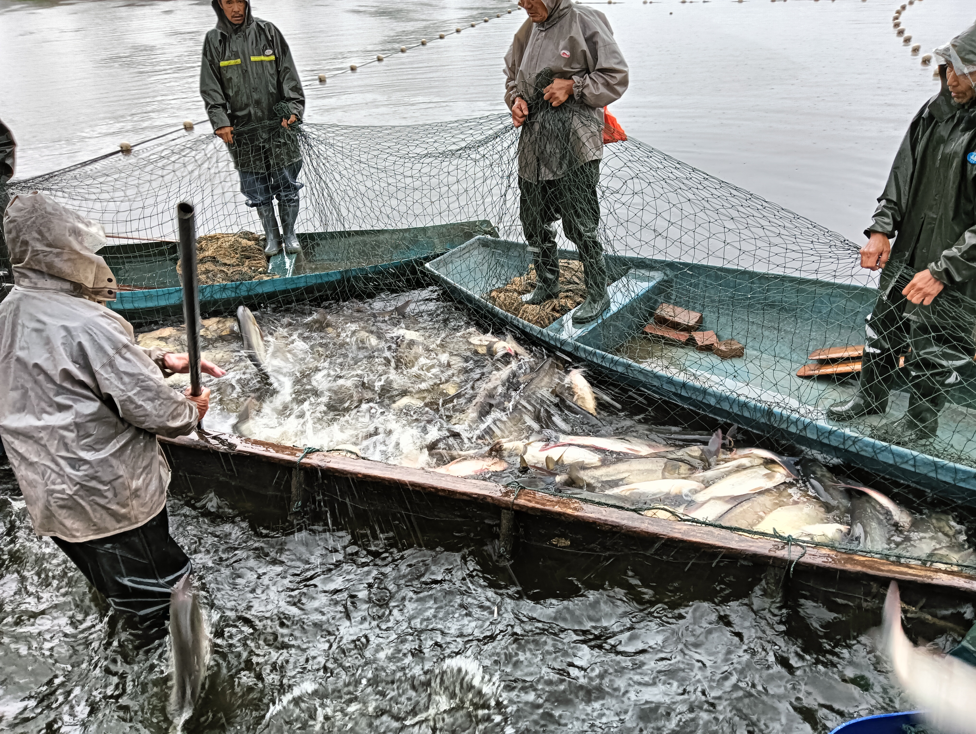 10月1日,水利電力公司在三溪口水庫開展捕魚工作。